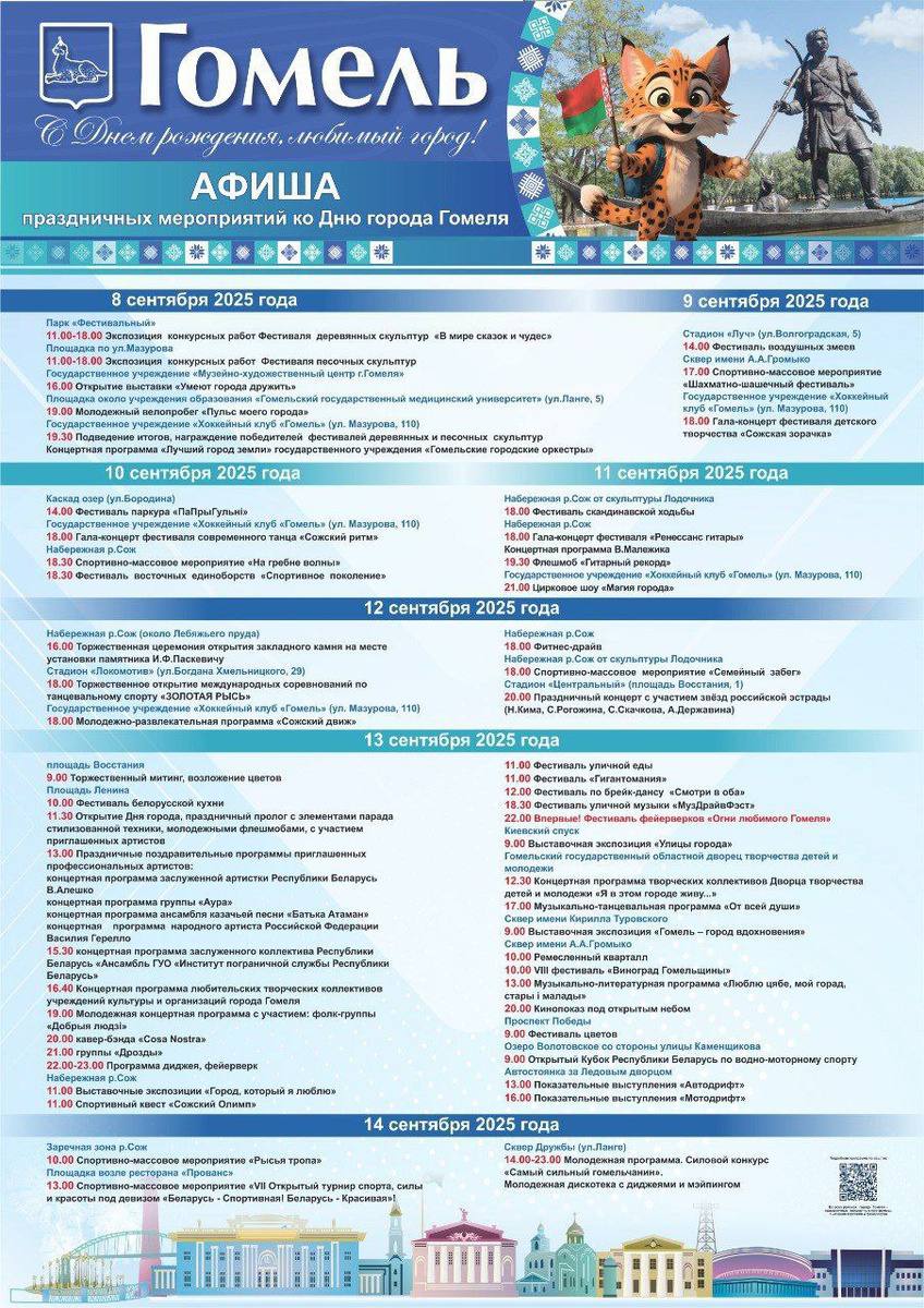 День города Гомель 2025: афиша мероприятий к 883-летию