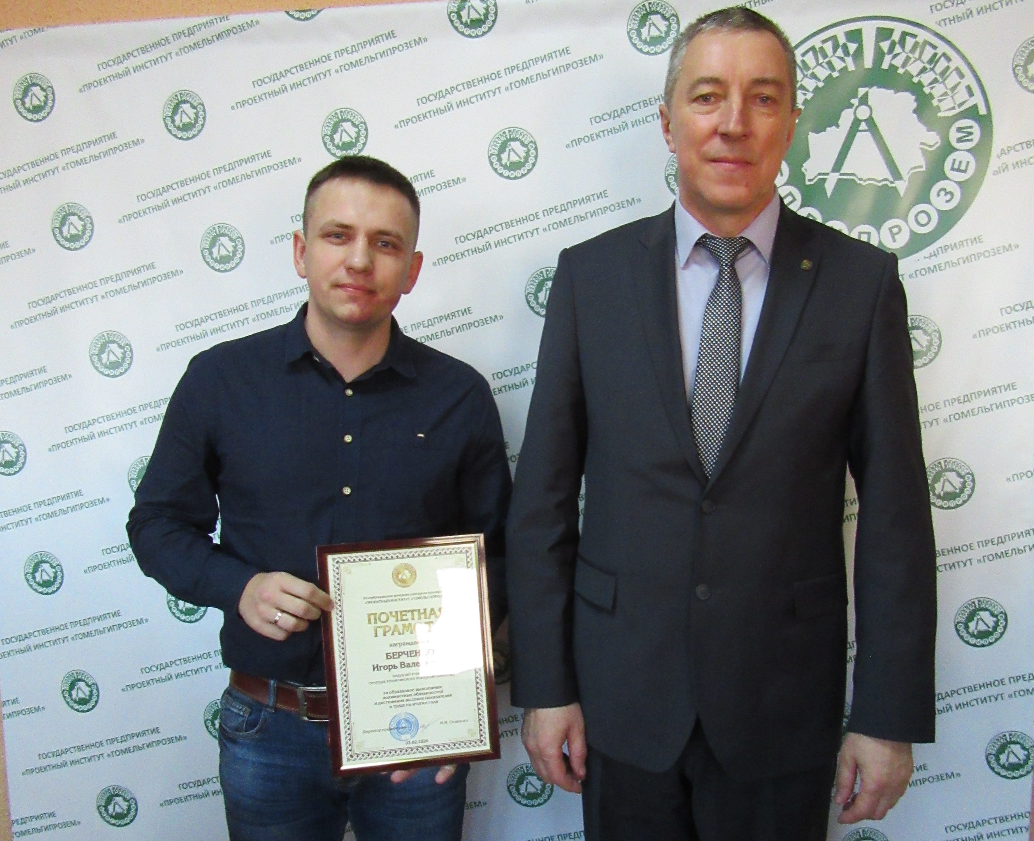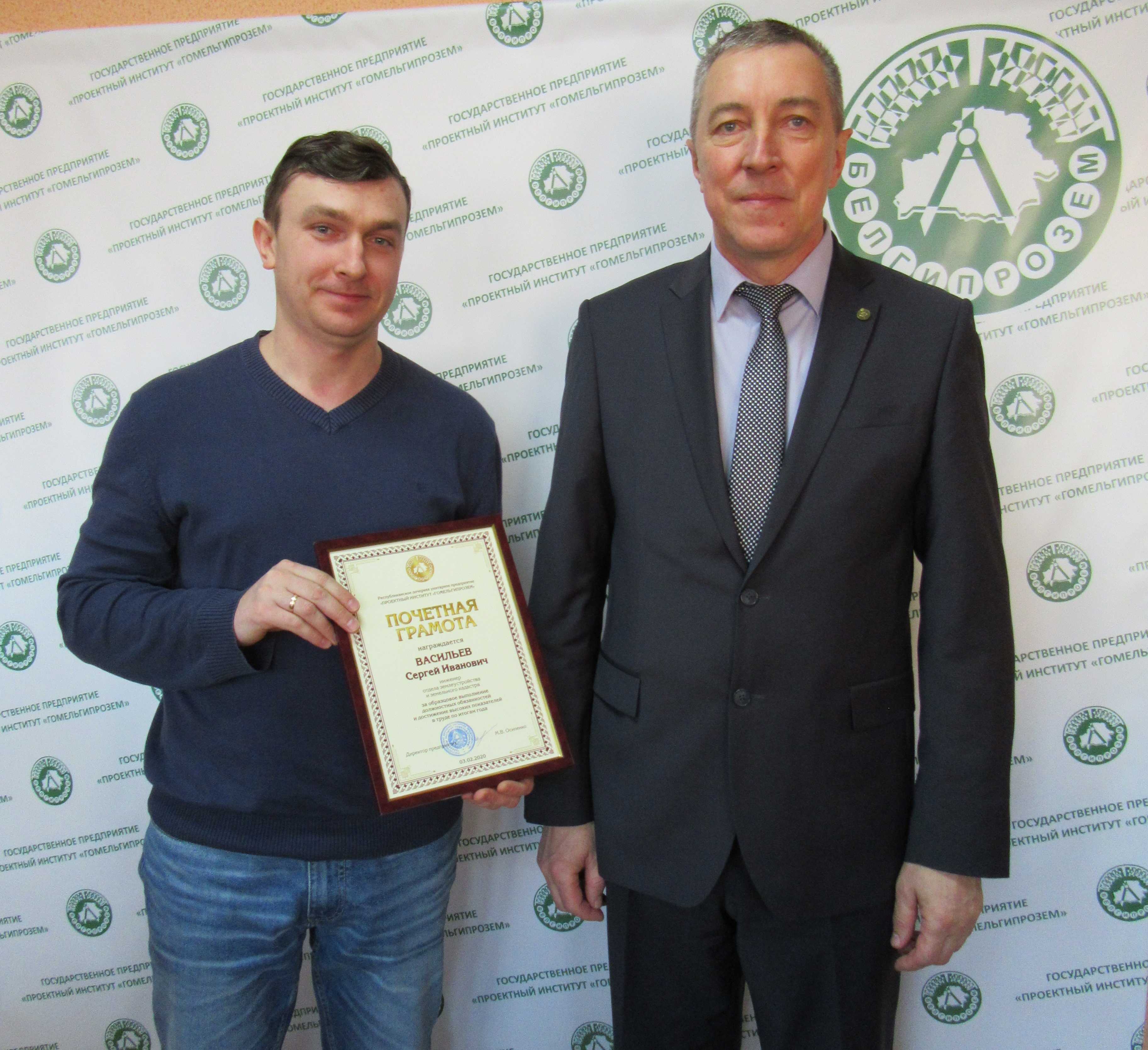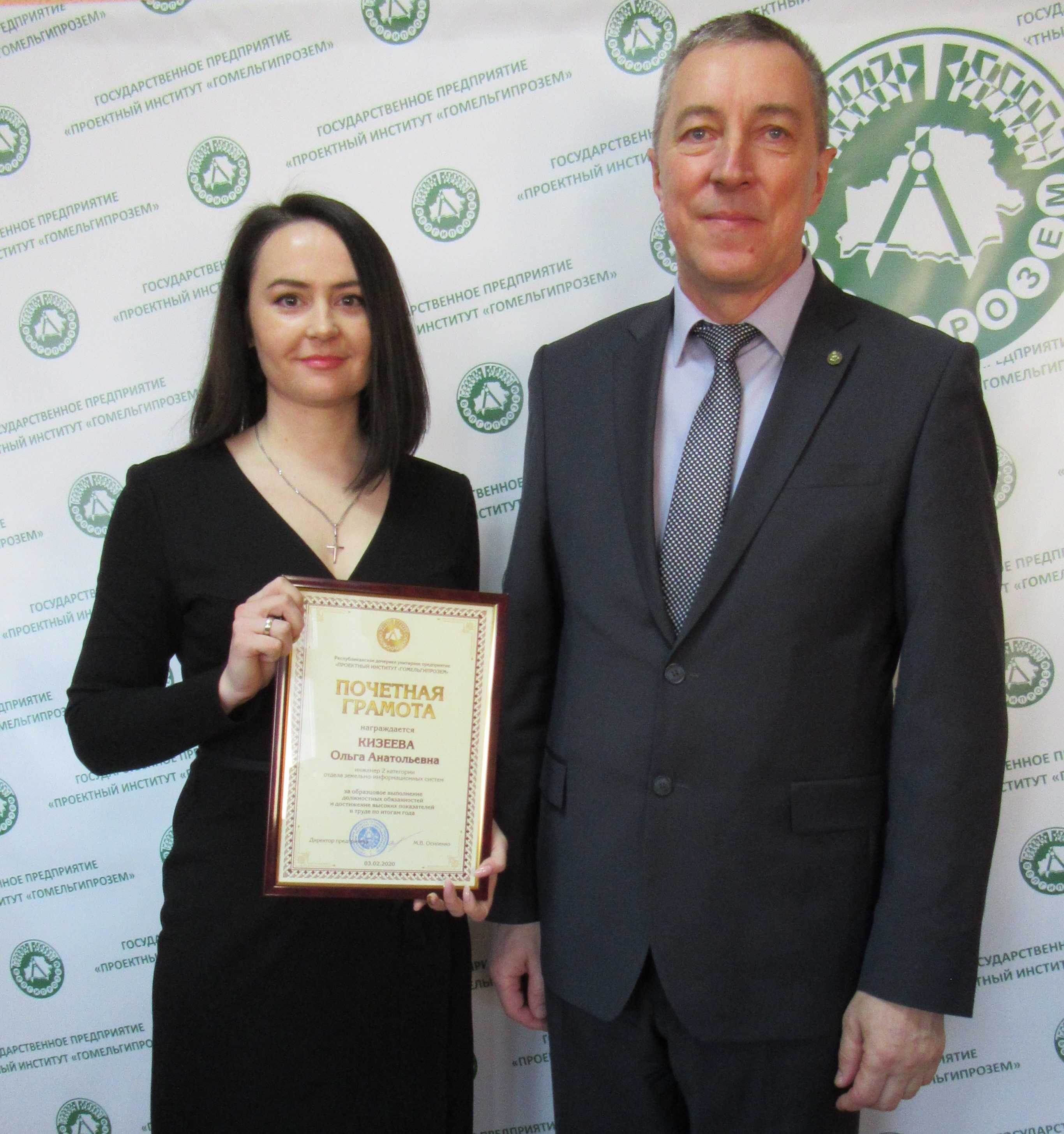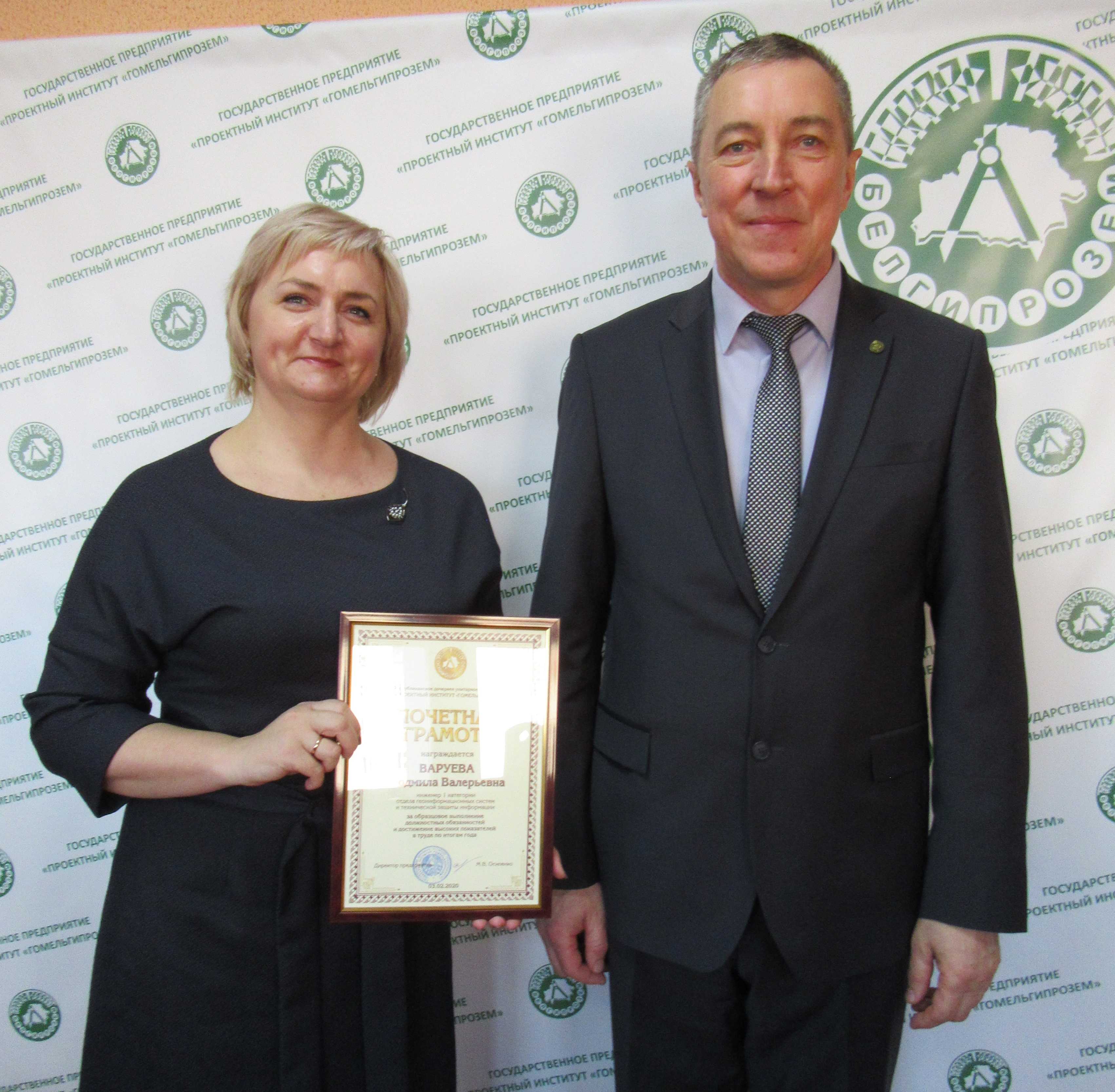 В торжественной обстановке почетными грамотами и благодарностями Государственного предприятия «Проектный институт «Гомельгипрозем» были награждены работники, внесшие весомый вклад в производственную деятельность предприятия.