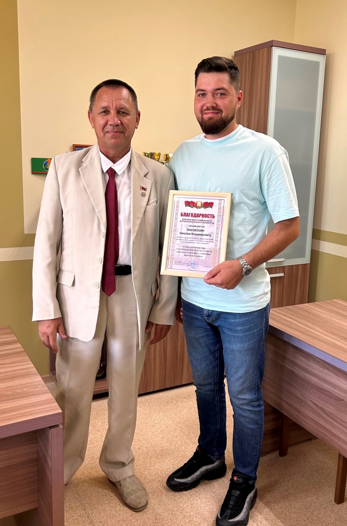 В актовом зале Государственного предприятия «Проектный институт Гомельгипрозем» в торжественной обстановке начальником отдела землеустройства Брагинского районного исполнительного объявлены благодарности Брагинского районного исполнительного комитета за добросовестный труд, значительный личный вклад в развитие земельных отношений на территории Брагинского района инженеру Маковскому Николаю Владимировичу и начальнику сектора Шурмину Андрею Геннадьевичу.