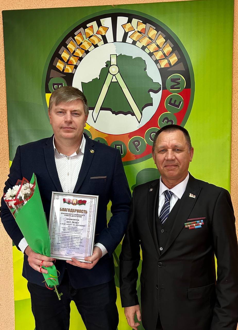 Теплые слова прозвучали и от Валерия Васильевича Черненка, начальника отдела по землеустройству Брагинского района. Он пожелал коллегам сплоченности, надежных друзей рядом и больших достижений в деле землеустройства Гомельской области. Вручил благодарности Брагинского районного совета депутатов начальнику отдела ЗИС и ТЗИ Александру Федоровичу Беглюку и начальнику отдела правовой кадровой и организационной работы Дмитрию Васильевичу Криволапу, а также благодарности Брагинского районного исполнительного комитета начальнику отела по землеустройству №3 Валерию Васильевичу Бересневу, начальнику сектора №4 отдела по землеустройству №1 Анне Михайловне Осипенко.