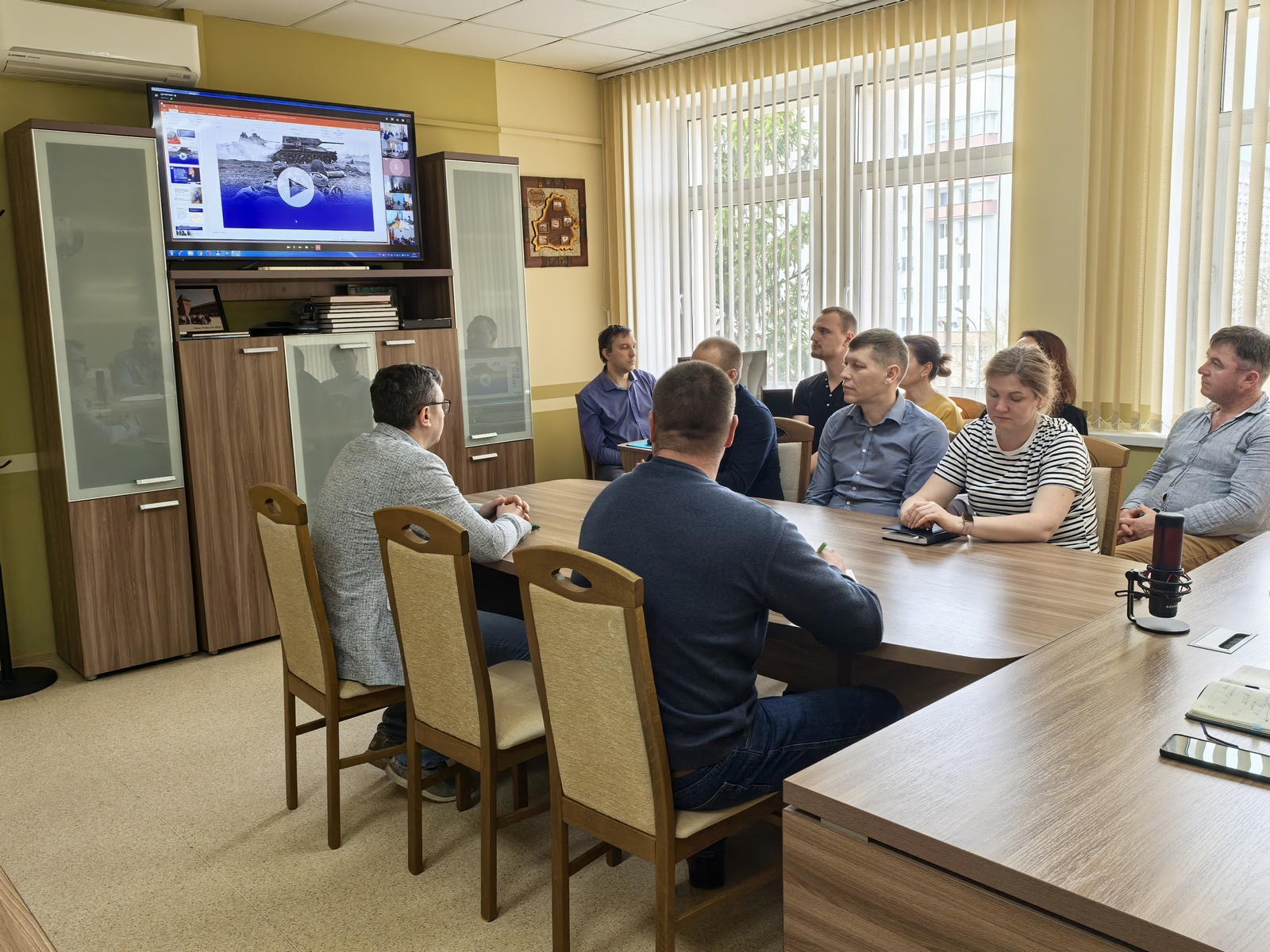 В формате ВКС работниками встретился доцент кафедры социально-гуманитарных и историко-правовых дисциплин, кандидат исторических наук, доцент Академии управления при Президенте Республики Беларусь Марат Атрушкевич.