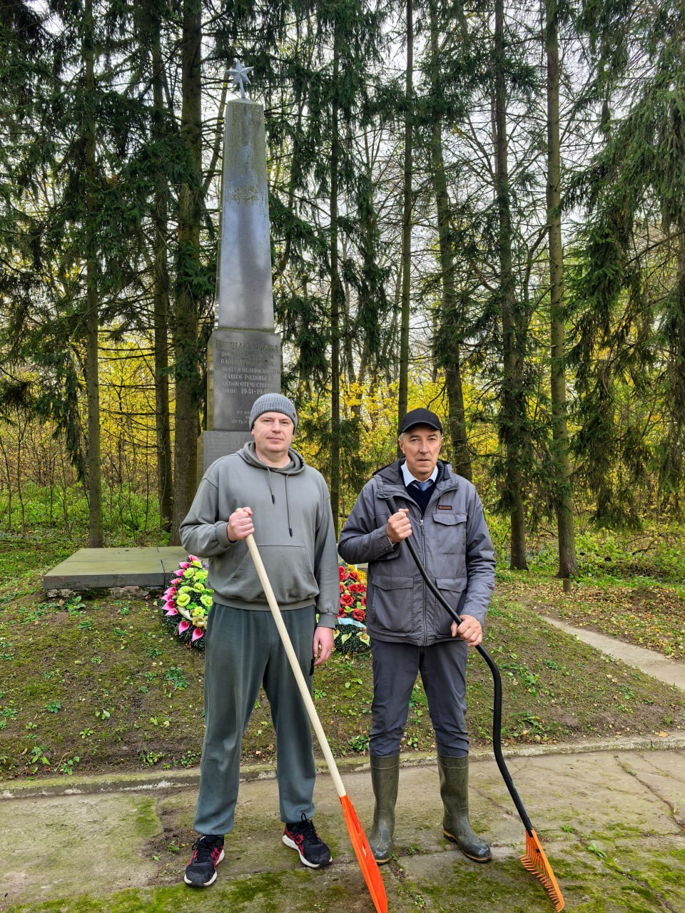 В преддверии республиканского субботника директор Государственного предприятия «Проектный институт «Гомельгипрозем» Михаил Владимирович Осипенко и начальник отдела ГИС и ТЗИ Александр Федорович Беглюк провели работы по благоустройству территории, прилегающей к памятнику воинам, погибшим в годы Великой Отечественной войны, в деревне Соболи Брагинского района.