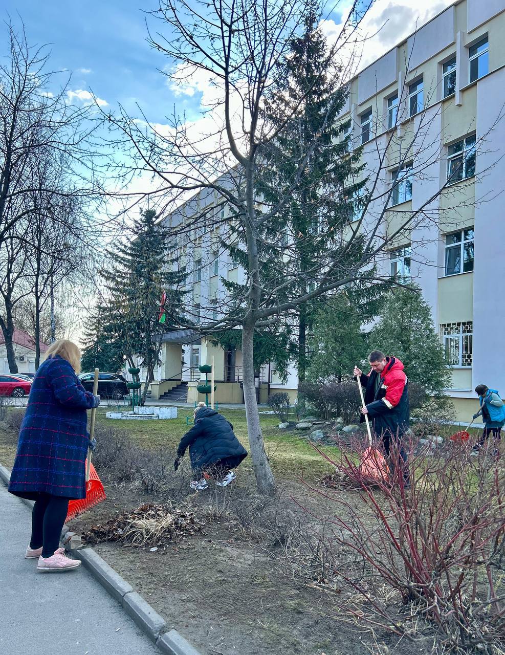 Наши сотрудники оказали содействие Государственному предприятию «Советское» в наведении порядка на придомовых территориях жилых домов Советского района г. Гомеля. Совместными усилиями был выполнен значительный объем работ по подготовке дворов к весеннему сезону.