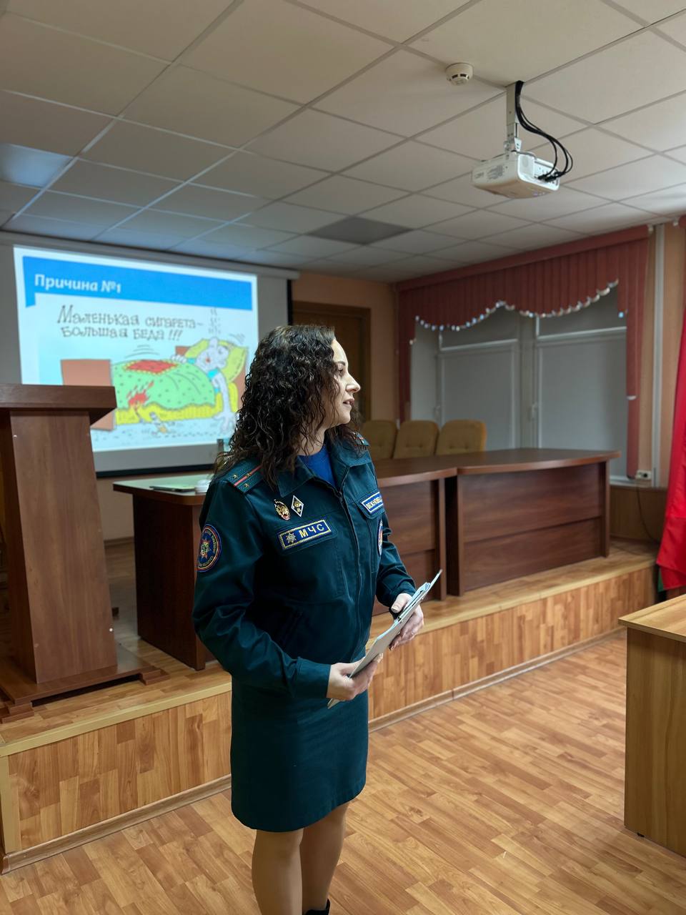 Мероприятие прошло в особенном формате. Лекцию для нашего коллектива проводил один из претендентов на звание «Лучший инспектор пропаганды органов и подразделений по чрезвычайным ситуациям Республики Беларусь».