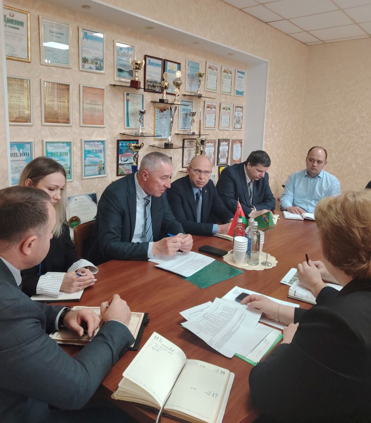 Во встрече приняли участие руководители предприятий Зарезако А.Н., Осипенко М.В., заместители директора РДУП «Проектный институт «Гомельгипрозем», начальники, заместители начальников, начальники служб филиалов РУП «Гомельское агентство по государственной регистрации и земельному кадастру».
