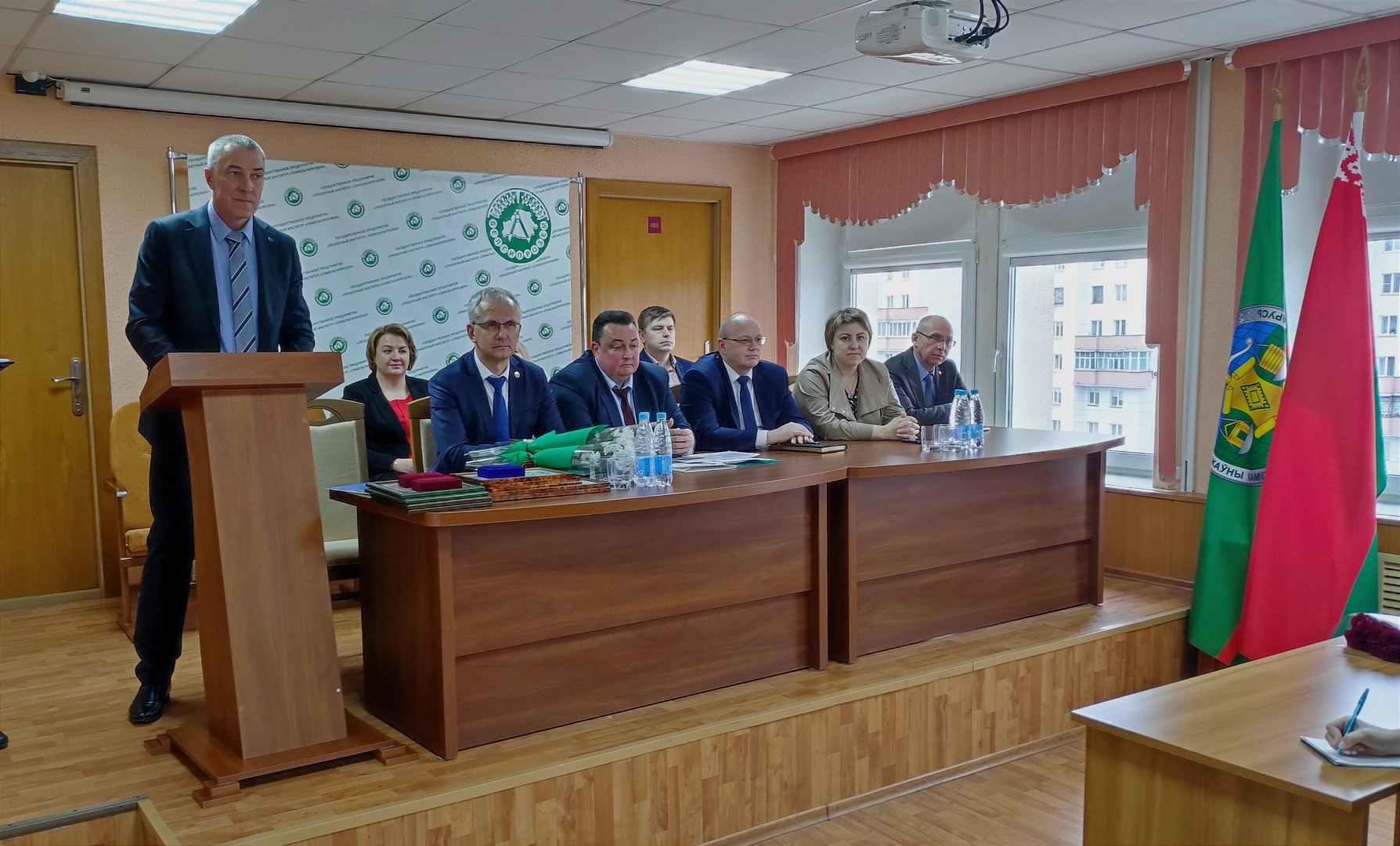 В собрании приняли участие заместитель Председателя Государственного комитета по имуществу Республики Беларусь Николай Павлович Бобер, первый заместитель генерального директора - главный инженер республиканского унитарного предприятия «Проектный институт «Белгипрозем» Абрагимович Павел Павлович, руководители главного управления землеустройства Гомельского областного исполнительного комитета и Республиканского унитарного предприятия «Гомельское агентство по государственной регистрации и земельному кадастру и Председатель Гомельской областной организации Белорусского профессионального союза работников леса и природопользования.