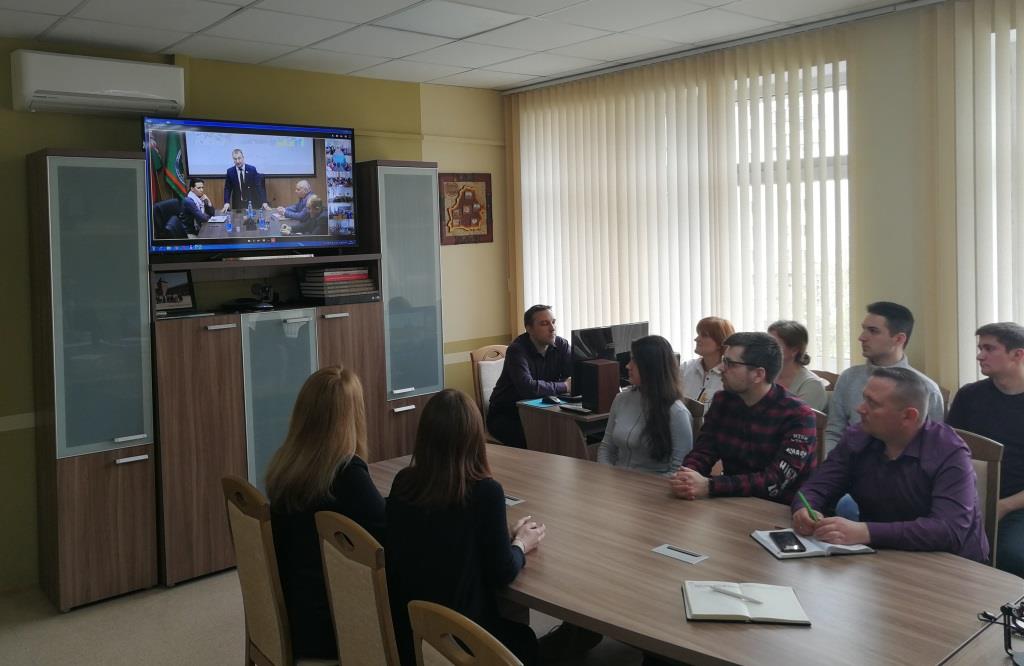 Сегодня на базе Республиканского унитарного предприятия «Проектный институт Белгипрозем» состоялась видеоконференция на тему: «Послание Президента Республики Беларусь белорусскому народу и Национальному собранию 31.03.2023» с участием депутата Палаты представителей Национального собрания Республики Беларусь Клишевича Сергея Михайловича.